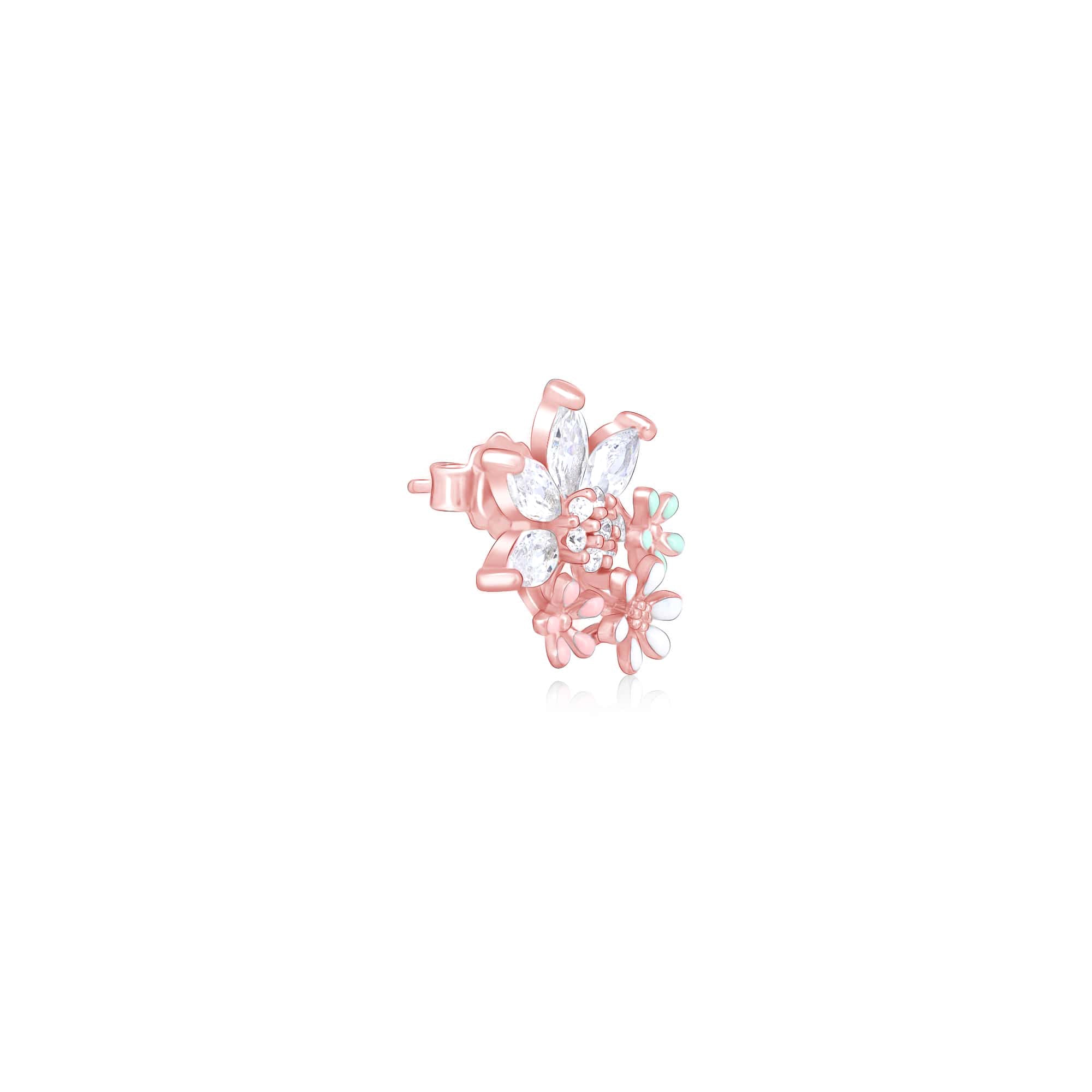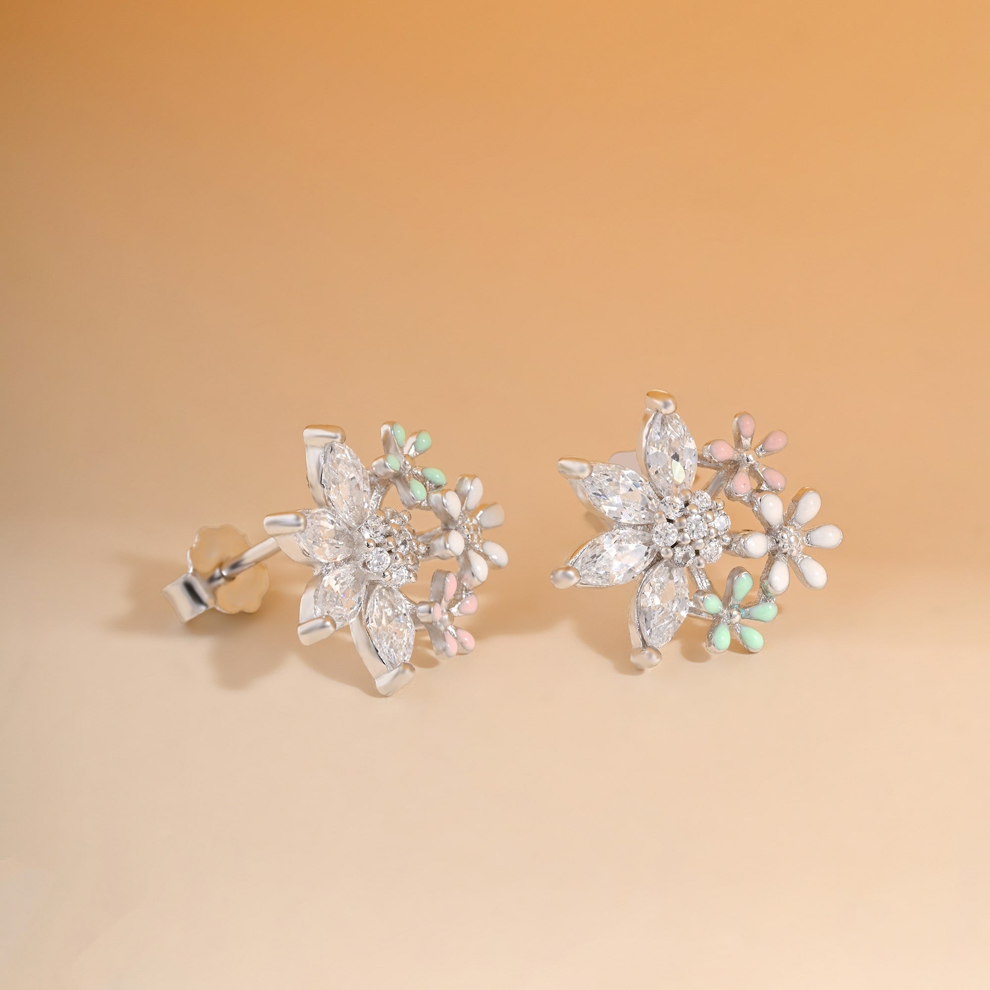 These stunning stud earrings feature a large petal centerpiece surrounded by three smaller pastel-colored petals, forming a delicate floral design. Perfect for adding a soft and feminine touch to any look.