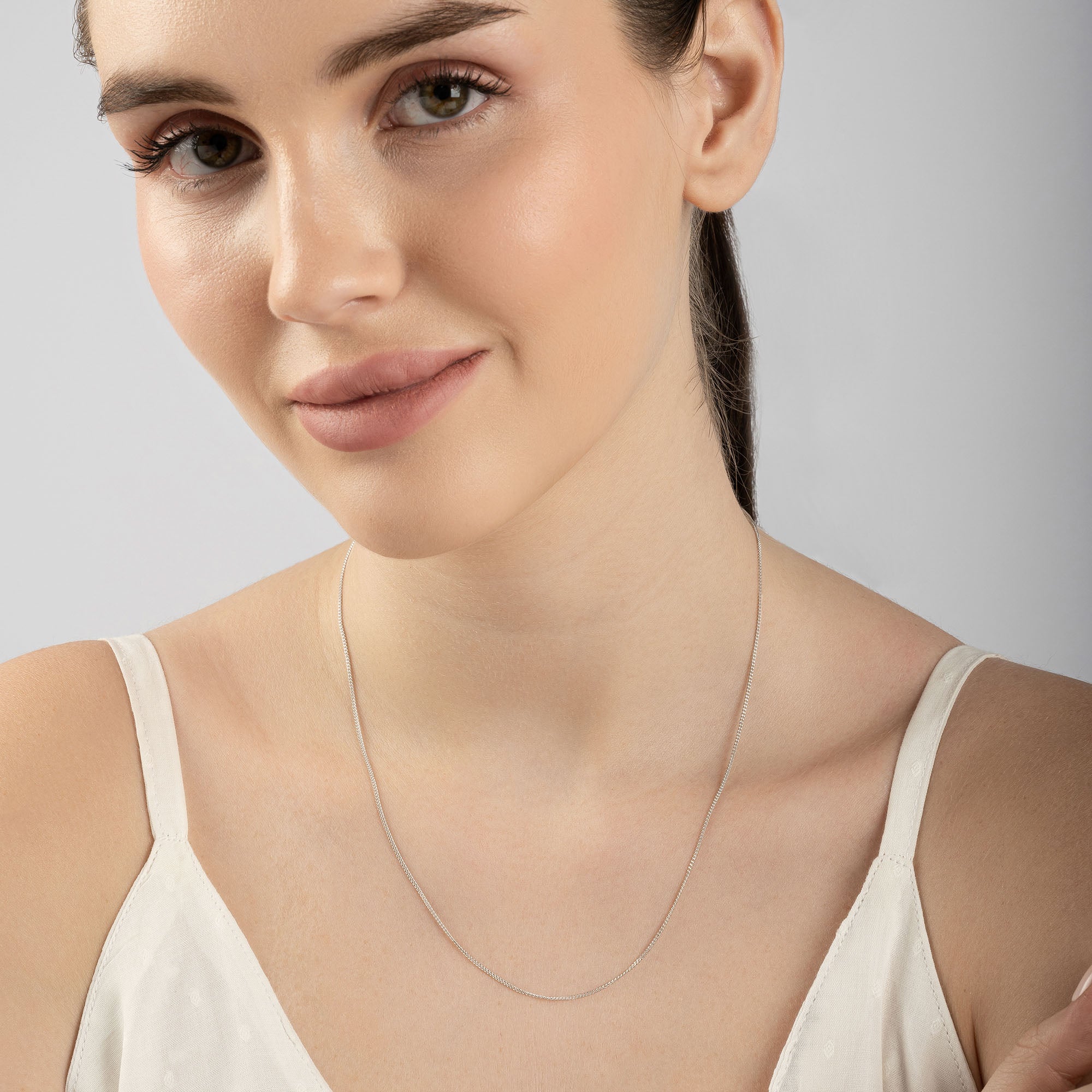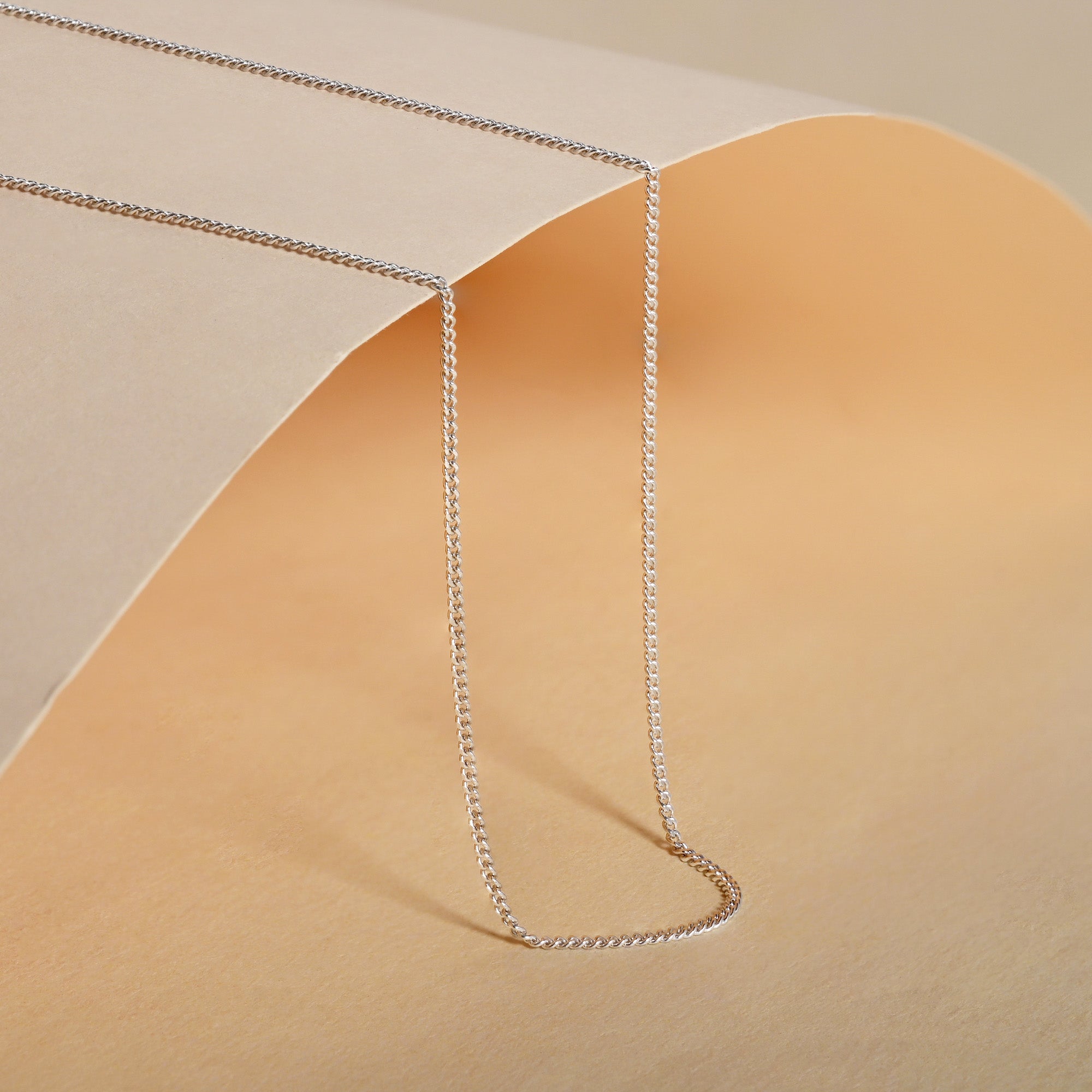 A clean and classic silver chain with smooth curb links. Made from pure 925 silver, it feels light around the neck. Perfect for anyone who loves simple, everyday jewelry.